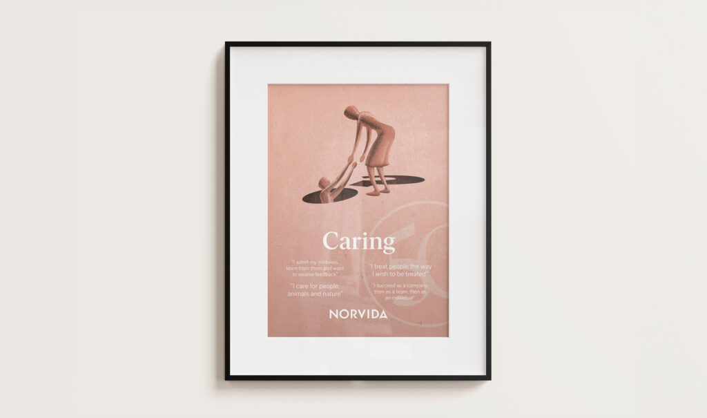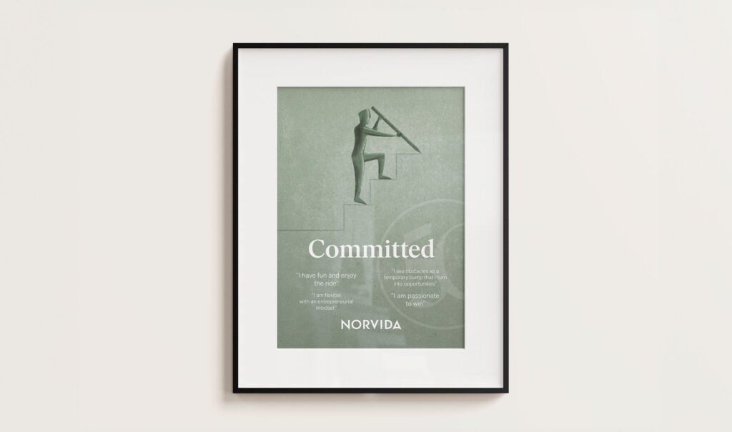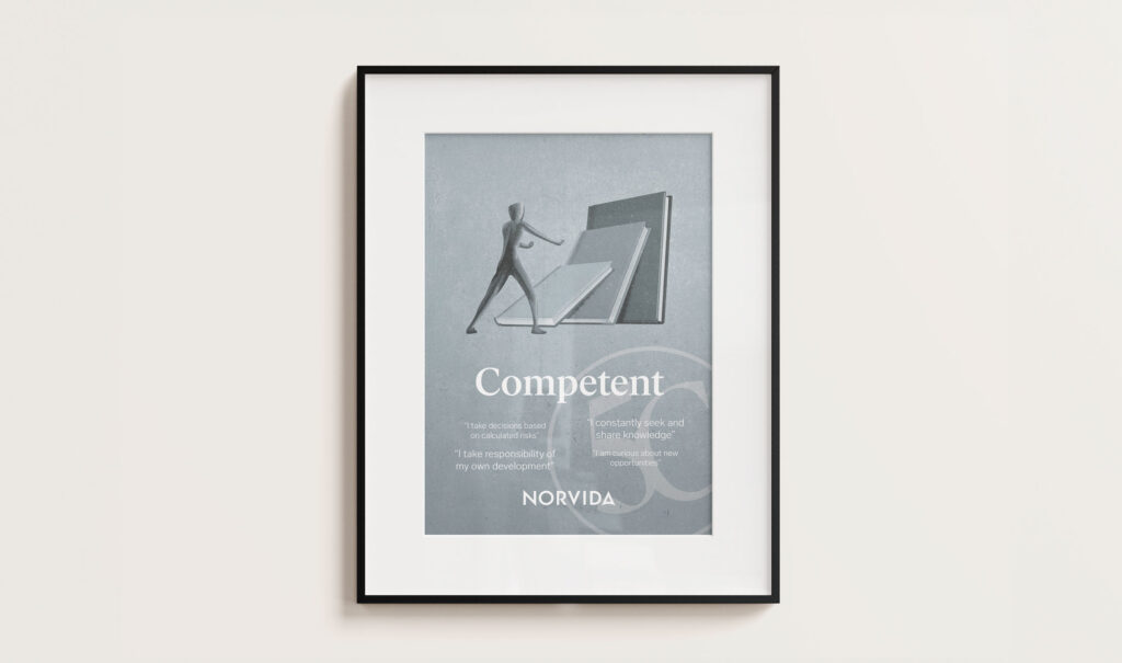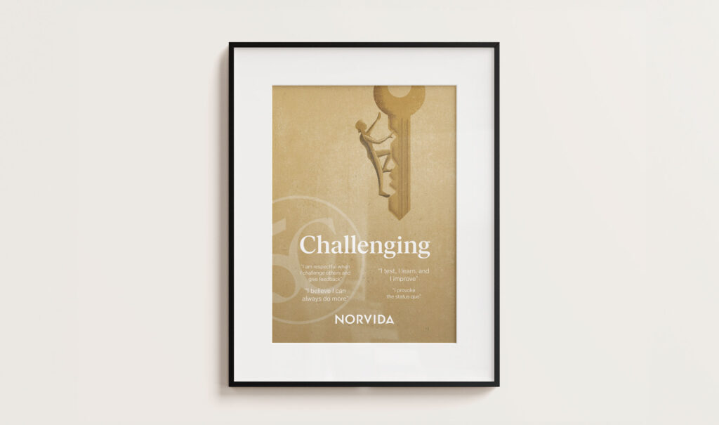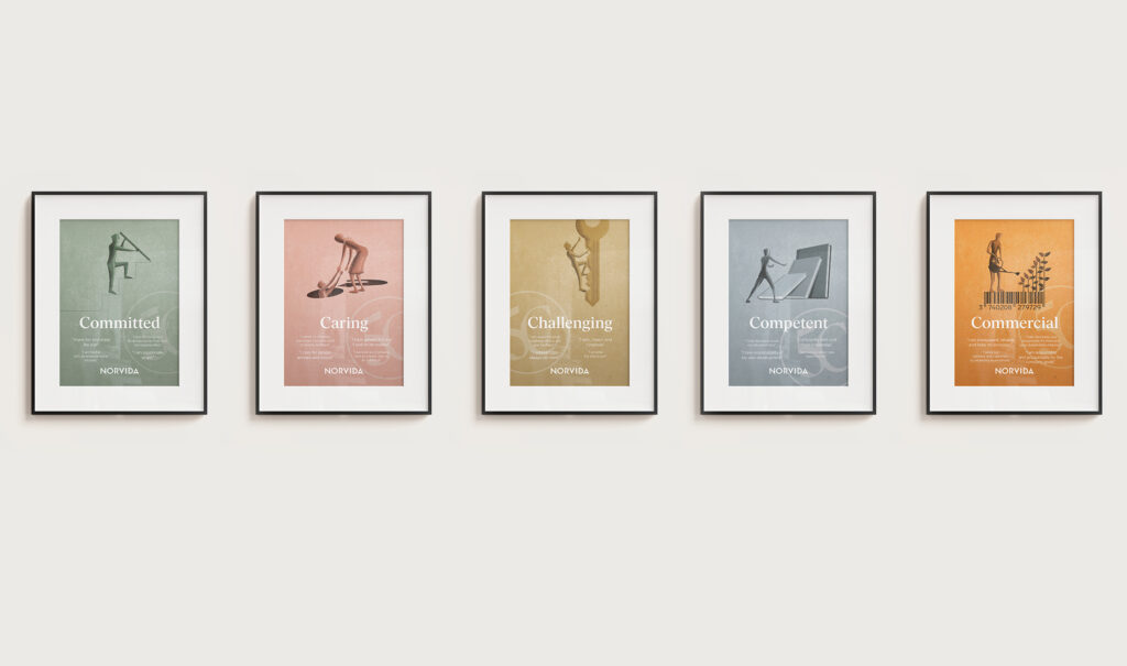 Under samlingsnamnet ”5C” har Norvida definierat sina värderingar genom fem värdeord med tillhörande citat. Dessa värdeord skulle var och ett illustreras och bli till var sin inspirerande och iögonfallande tavla för ökat engagemang och kännedom internt.